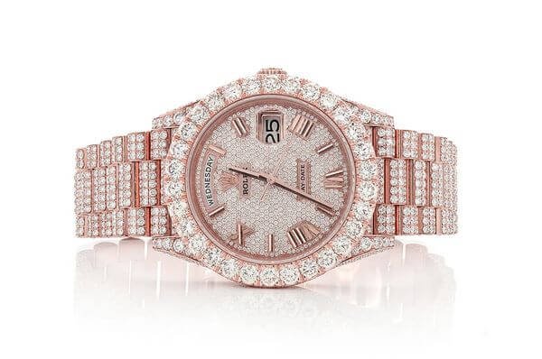 ROLEX DAYDATE 40MM ROSE GOLD AUTOMATIC STAINLESS STEEL WATCH FULL ICED MOISSANITE 24.00CT