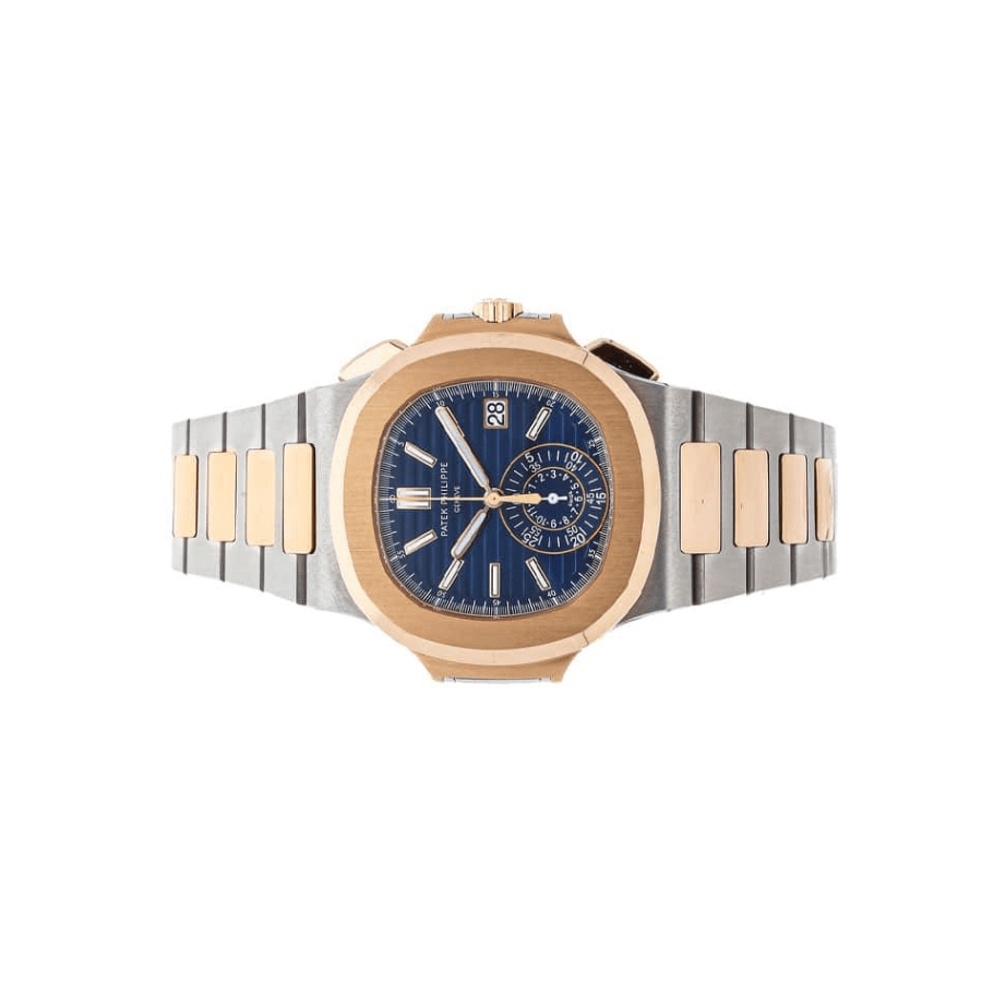 The Patek Philippe Nautilus Chronograph 5980/1AR Steel and Rose Gold Blue Dial Replica is a luxurious watch that is sure to impress. The case is made of 904L stainless steel and is transparent in color. The bezel is also made of 904L stainless steel and is rose gold in color. The crystal is sapphire and the size is 40.50 mm with a thickness of 12.20 mm. The bracelet is adjustable and is made of 904L stainless steel with a fold clasp in both rose gold and steel.