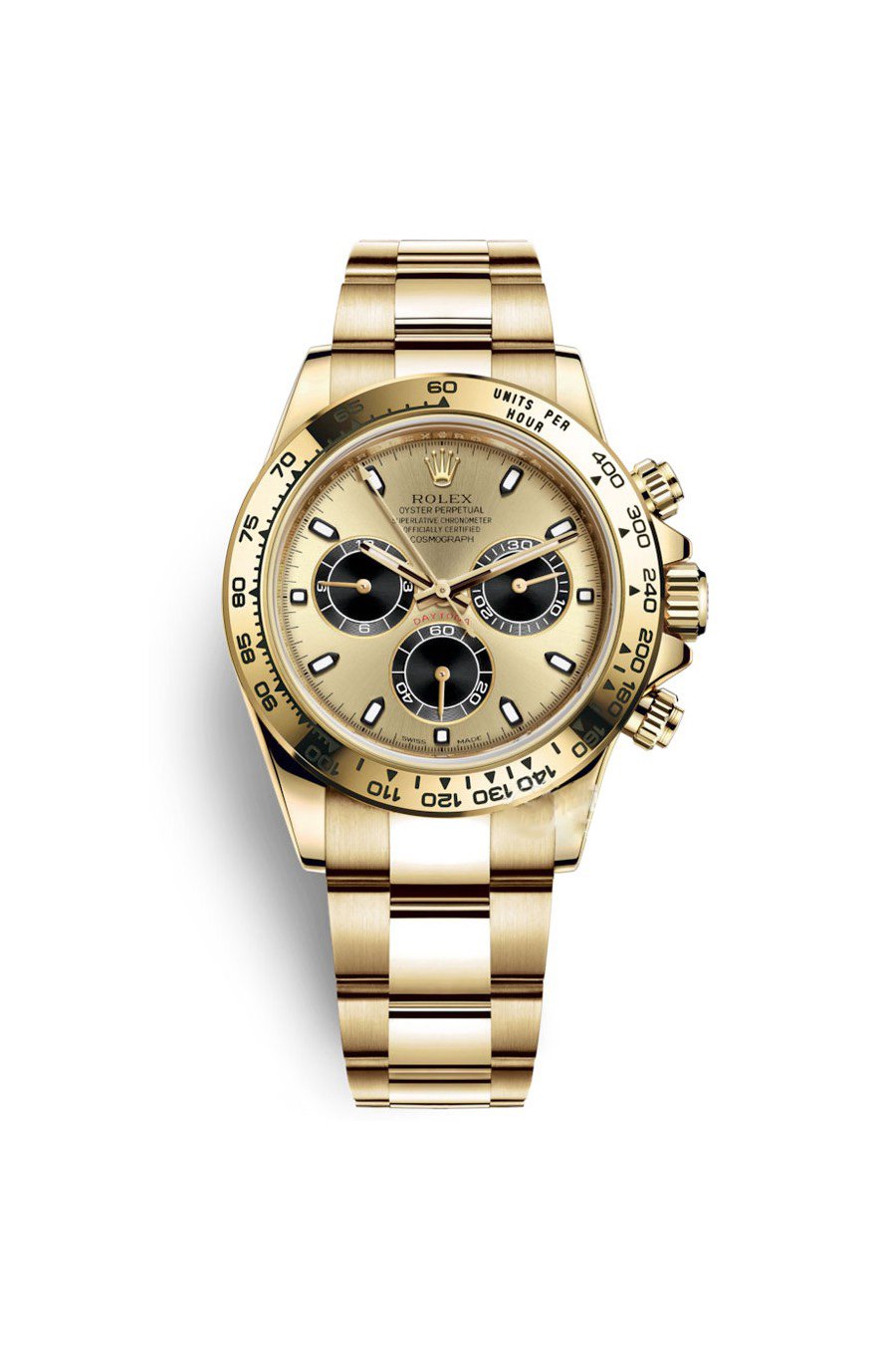 With its tachymetric scale, its three counters and its pushers, the Cosmograph Daytona was designed to be the ultimate timing tool for endurance racing drivers. The bezel features a tachymetric scale to read average speed over a given distance based on elapsed time.