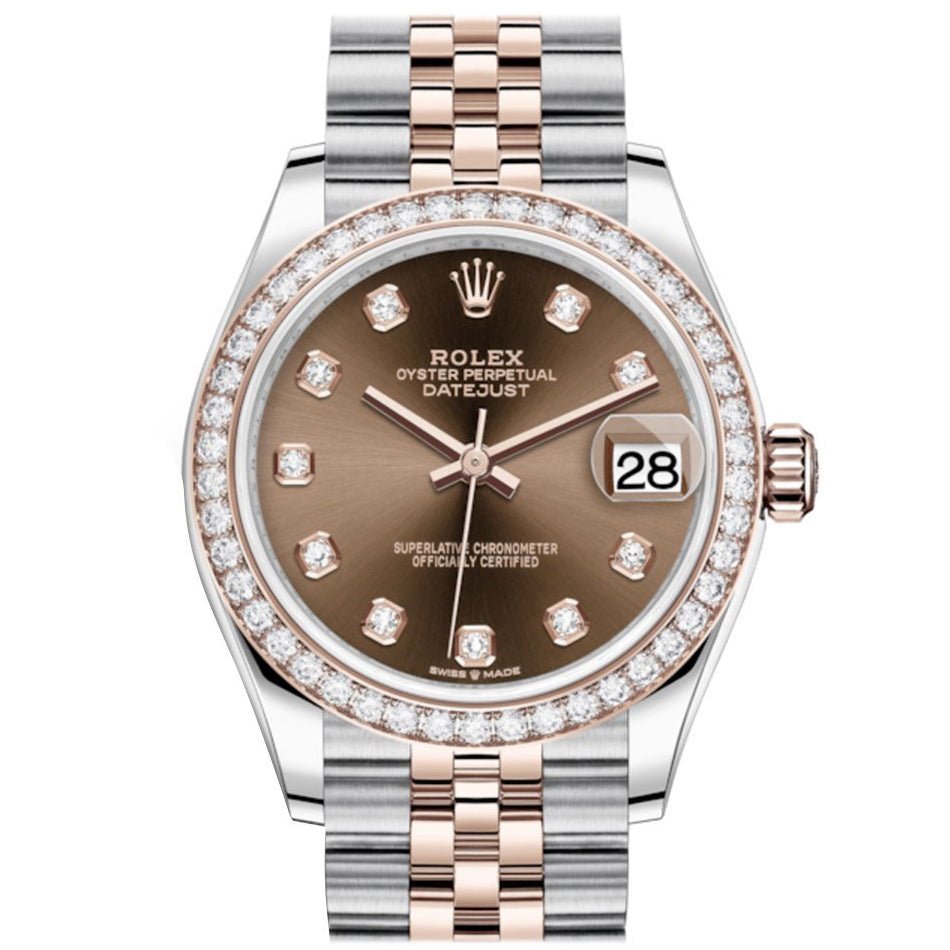 Rolex Datejust 31 Chocolate Diamonds Dial Diamond Bezel Rose Gold Two Tone Jubilee Watch 278381RBR 278381