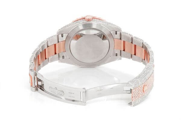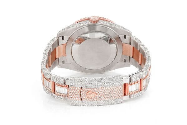 This Rolex Diamond? watch Datejust is made of Two-Tone-Rose and has a 41mm with 22.10ctw of Moissanite. this watch inside and out to Rolex quality standards. This watch comes with an Rolex box.