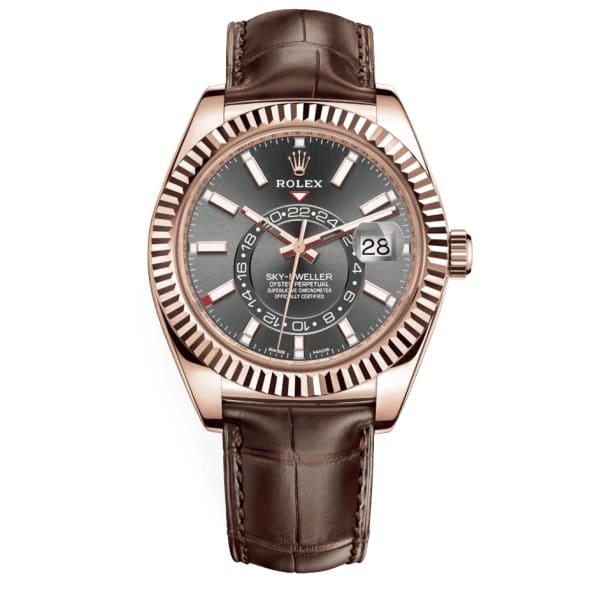 Rolex Sky-Dweller Dark Rhodium Dial Automatic 18kt Everose Gold Leather Strap 326135-0008