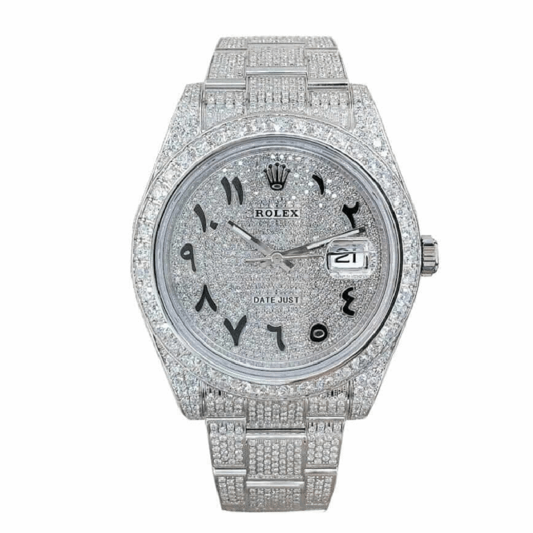 Rolex Datejust 116300 White Gold Diamond Arabic Dial Iced Out Replica